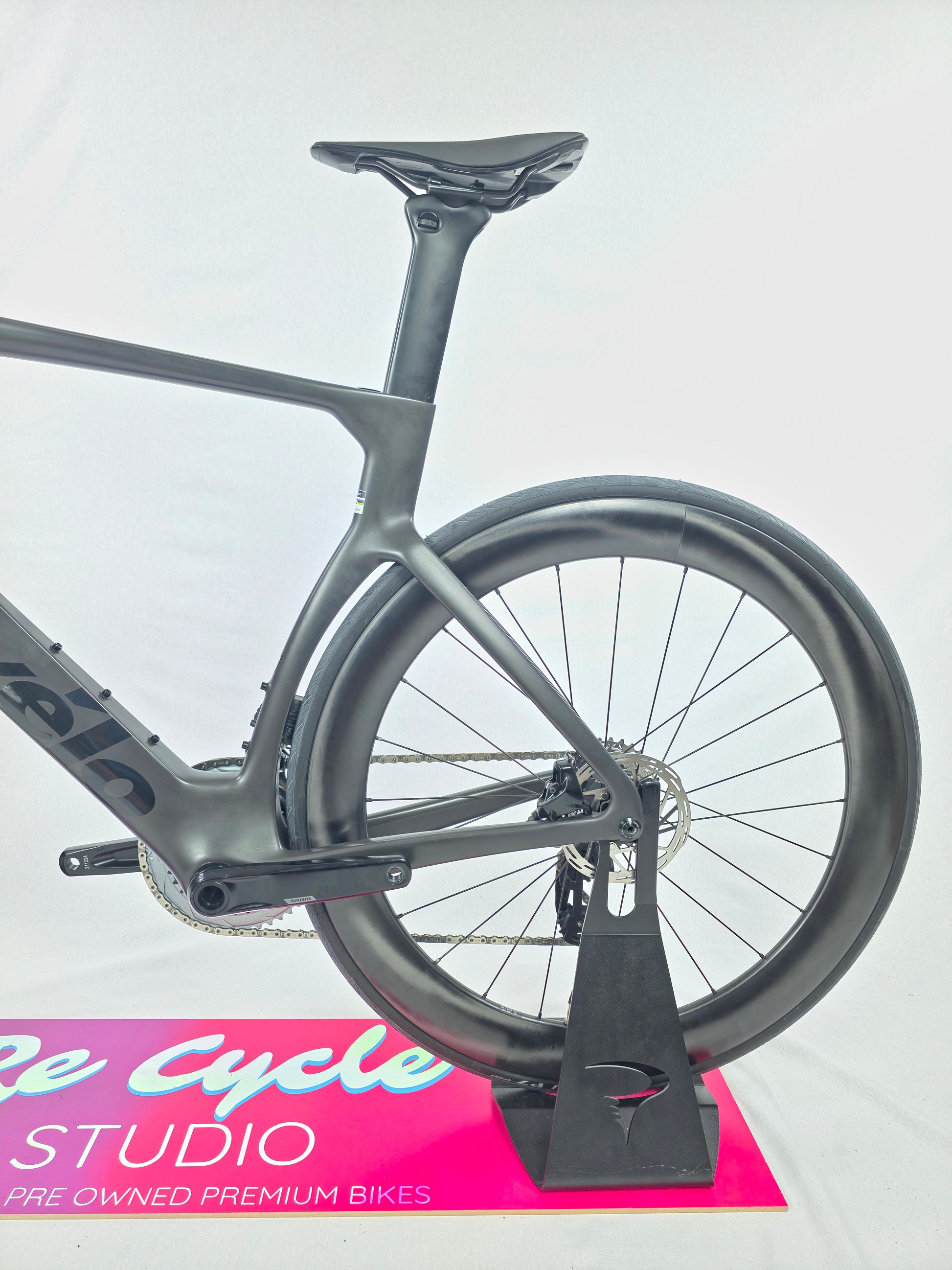 Built on Cervélo’s flagship aero chassis — the same DNA ridden by WorldTour pros — this 2023 S5 demo frame has seen only display time, never abuse. Reassembled with a brand-new SRAM Rival AXS 12-speed groupset for precise, wireless shifting and a new Reynolds AR 60 carbon wheelset for deep-section speed and stability. Every component has been freshly installed and tuned — ready to deliver that unmistakable S5 feel: razor-sharp handling, relentless acceleration, and wind-cheating efficiency.
